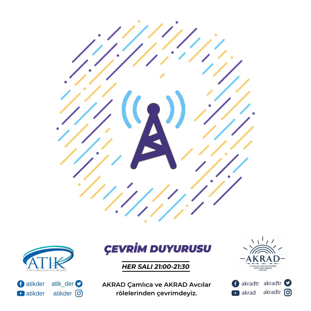 ATİK Sosyal Gelişim Gençlik ve Spor Kulübü Derneğimiz, “Kesintisiz İletişim” sloganı ile gönüllüleri ve üyeleri arasında iletişimi devam ettiriyor. Radyo amatörlüğü konusundaki bilgi ve tecrübelerimizi artırmak ve bilgi alışverişinde bulunmak amacıyla yeni amatörlere yönelik amatör telsizcilik temel işletme bilgileri, öğrenilen bilgilerin uygulaması amacıyla AKRAD çatısı altında her hafta düzenli olarak AKRAD Çamlıca ve AKRAD Avcılar